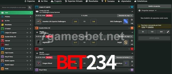 A aposta Bet234 oferece aos jogadores a experiência mais conveniente de apostas em eSports!